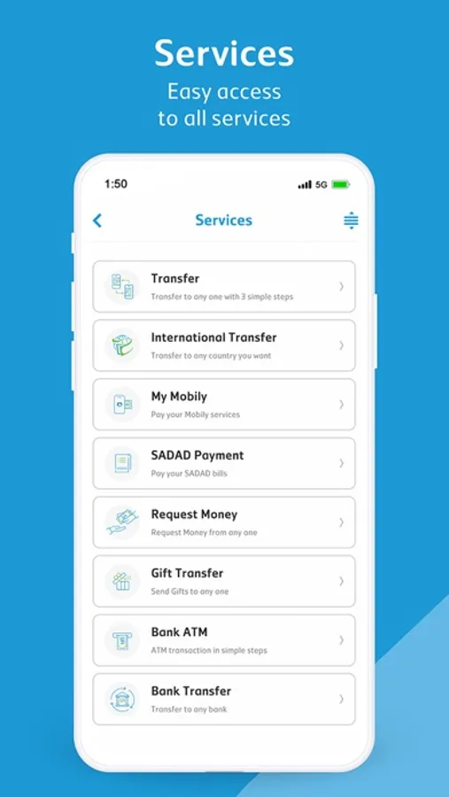 Mobily Pay is your perfect choice for making daily financial transactions & purchases. Mobily Pay is the best choice for your local & international transfers. Through the app, you can pay your bills in one click.