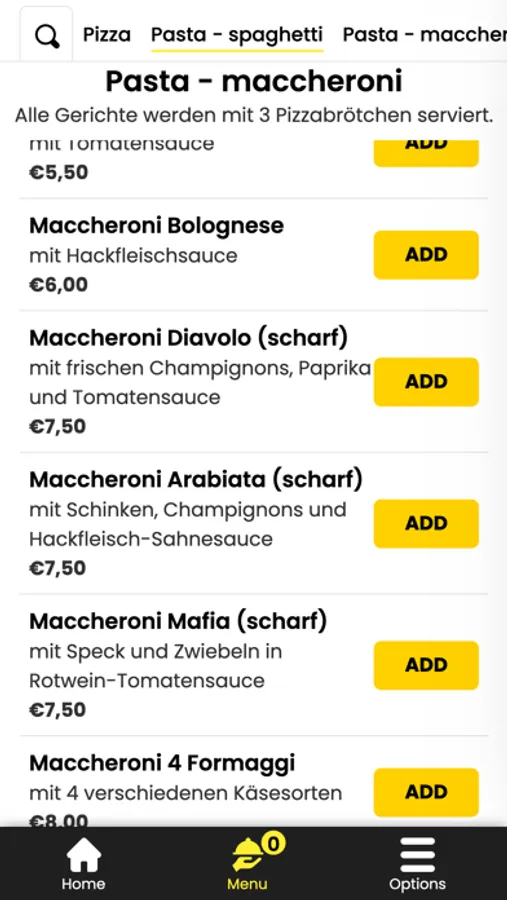 - Durchsuchen Sie die Speisekarte des Restaurants und sehen Sie sich alle anpassbaren Optionen im Voraus an