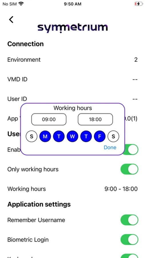 The Symmetrium client app provides a connection to Virtual Mobile infrastructure.
