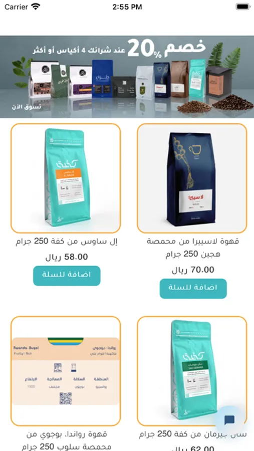 - القهوة المختصة المحمصة من العديد من المحامص و المحاصيل .