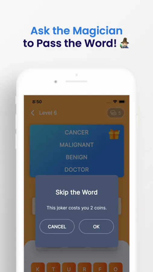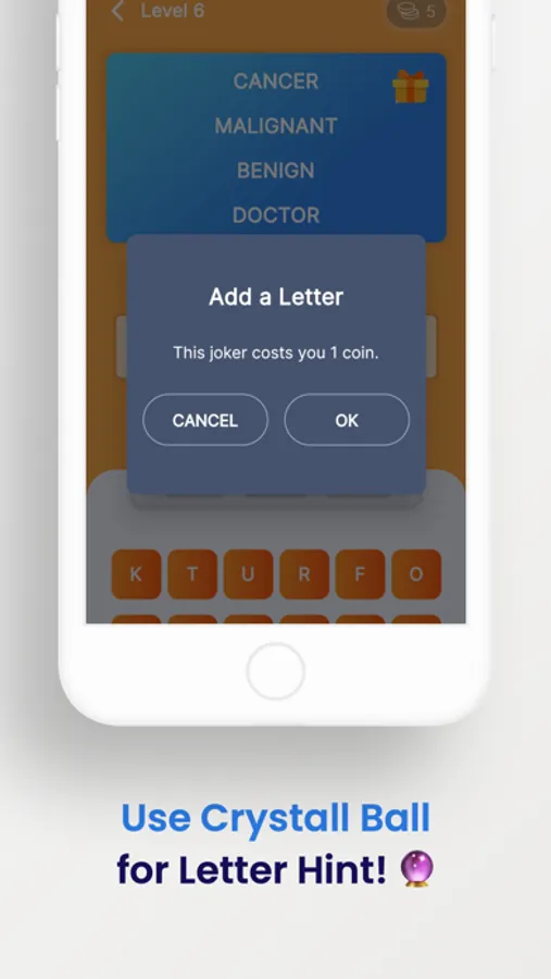 • Get stuck in a word? No worries, magical powers waiting for you! Get a letter from the magical crystal ball or ask the magician to tell this word to you.