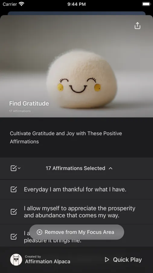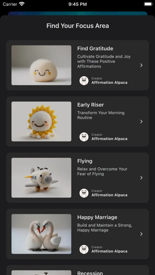 • Curated categories - Combine and create your custom affirmation track.