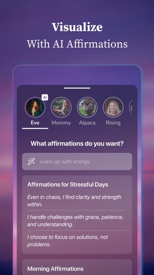 • Personalized affirmations - Select your favorites and generate a tailored audio session.