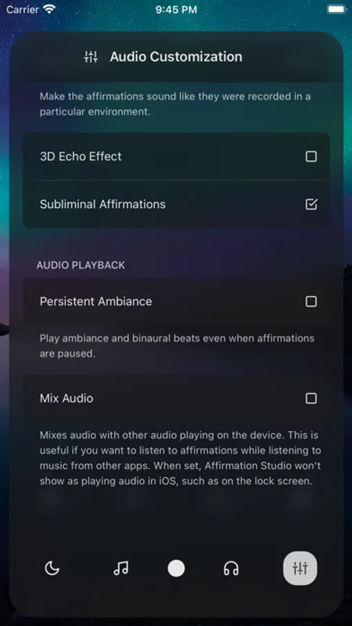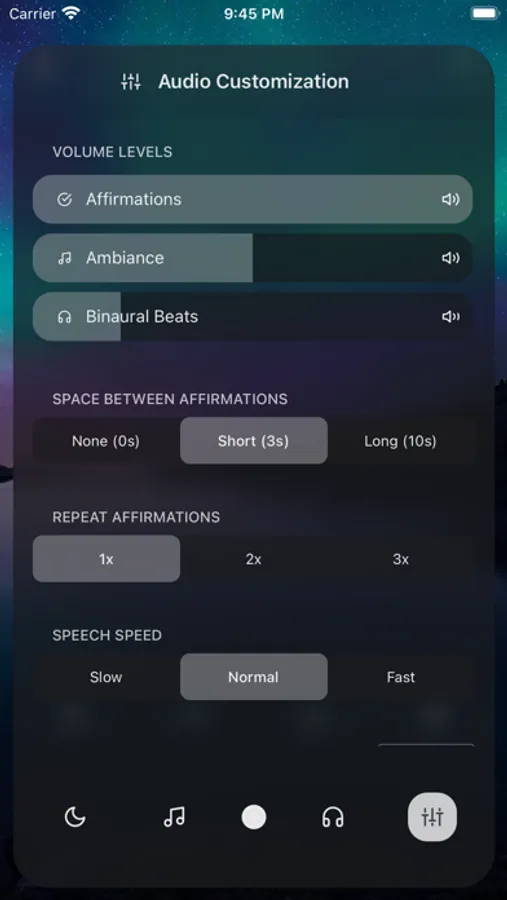 • Choose your background - Pick the music, ambiance, or enjoy affirmation-only sessions.