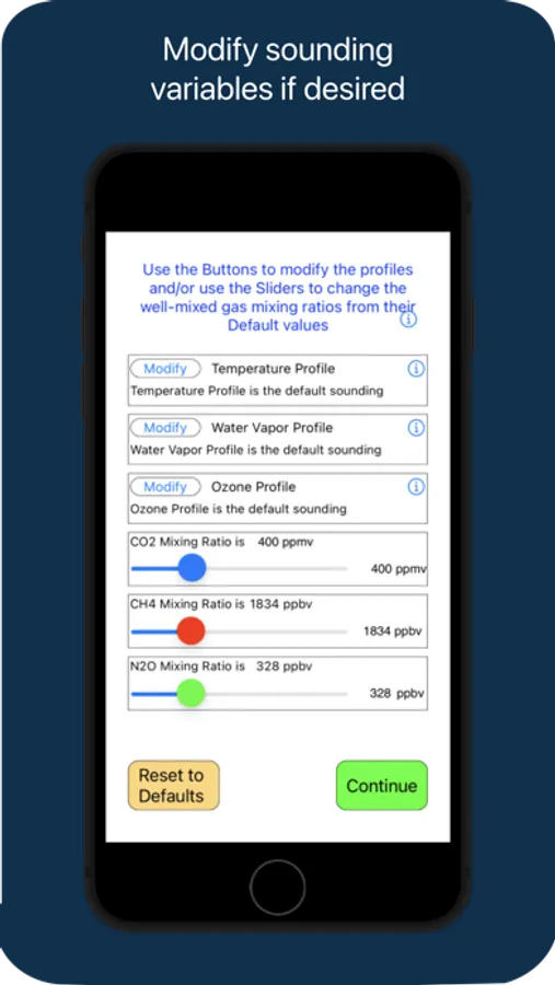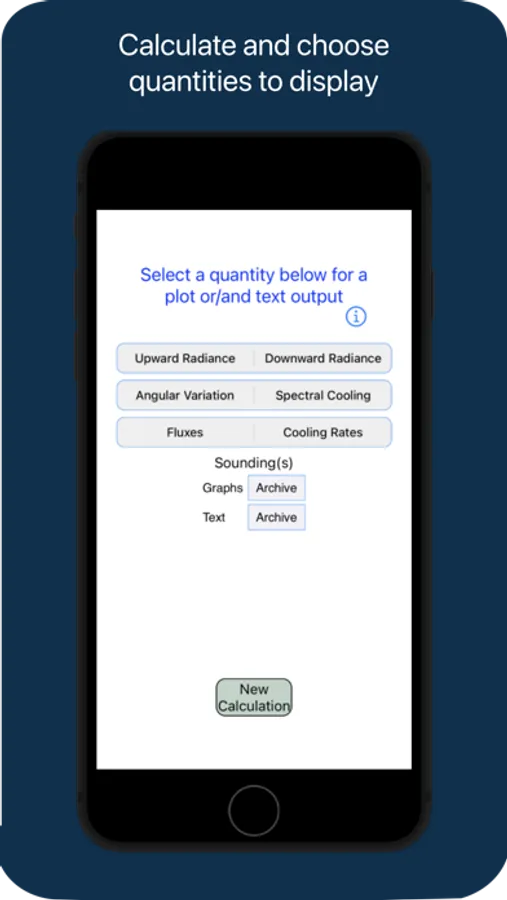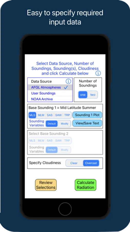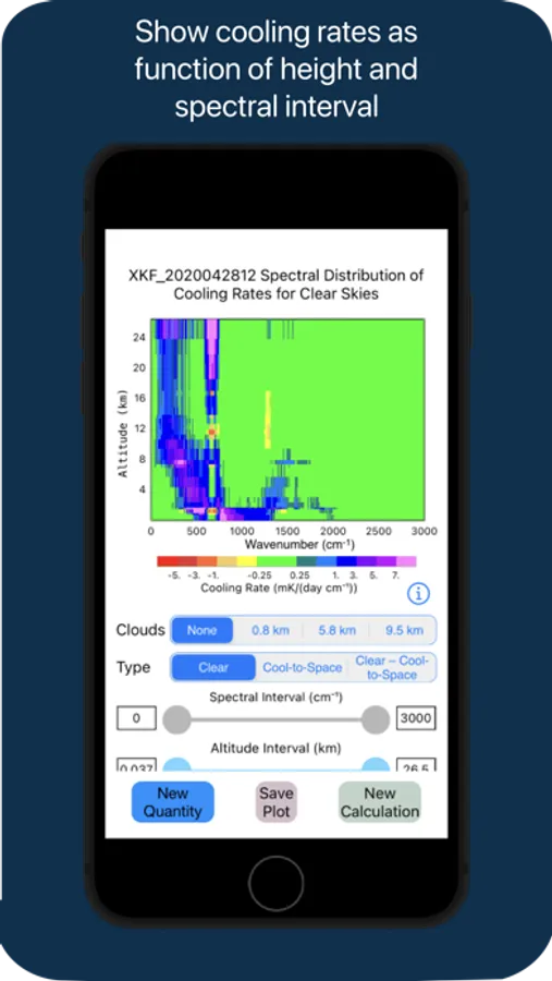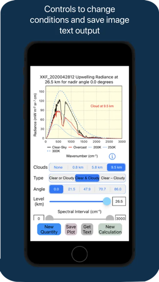 The application allows a user to input atmospheric data of their choice to a calibrated radiative transfer model that calculates the spectral radiance field throughout the atmosphere. The user may select specific parameters for manipulation, display, listing and/or saving, including: