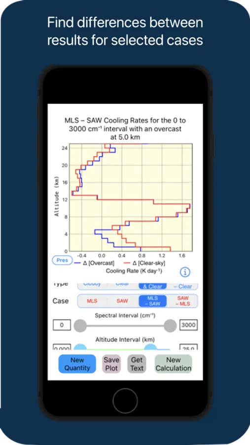 The user may make perturbations to any or all of the input radiative properties on each or neither of two possible input soundings, thereby allowing for “what-if” type simulations. The difference between the quantities calculated from two different input soundings are easily determined, thereby calculating many difference terms, such as trace gas or cloud radiative forcing. The graphics are easily manipulated to zoom in on various portions of the graphs, and both the tabulated and graphical outputs are effortlessly saved to a variety of other applications or storage locations.