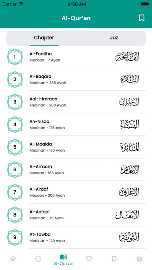 A list of the verses of the Quran that can be read as supplications grouped by chapter from the first to the last one.