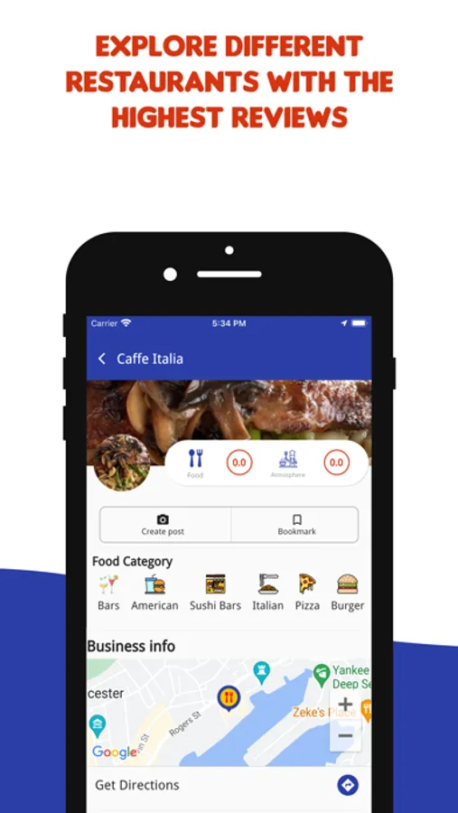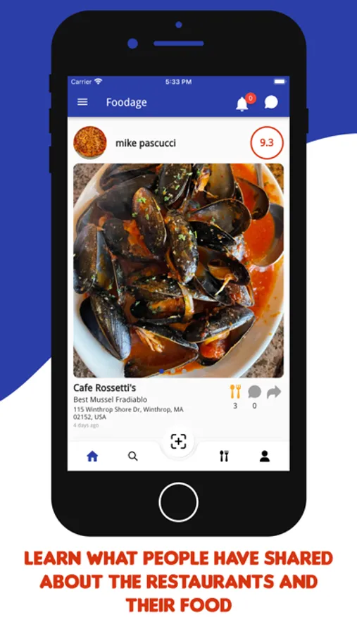 and let the restaurants know about their experience. Each post on our app will include photos