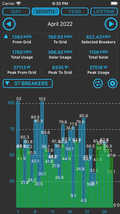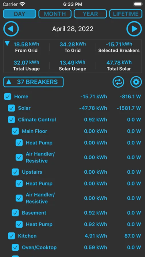 View power usage of every breaker in your home in real time. View daily, monthly, and annual summaries to quickly identify and eliminate waste.