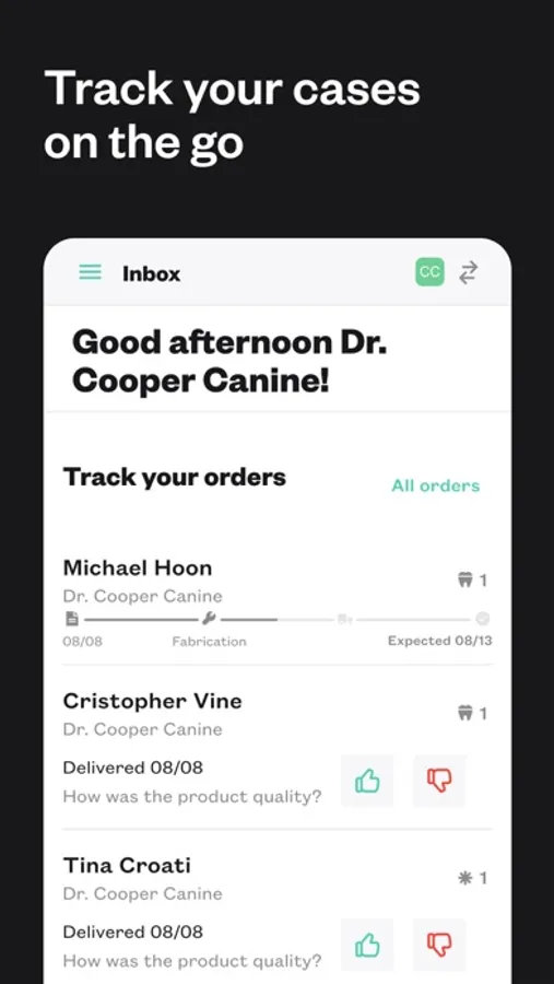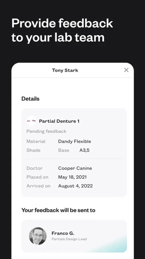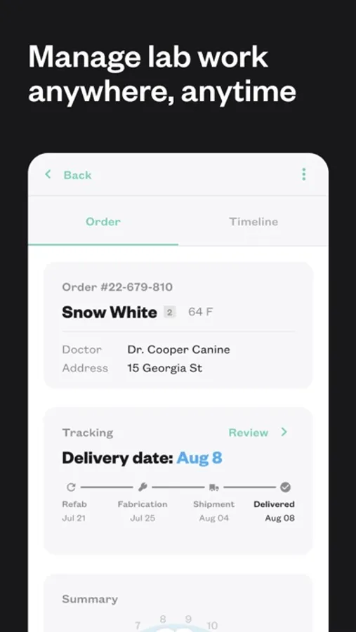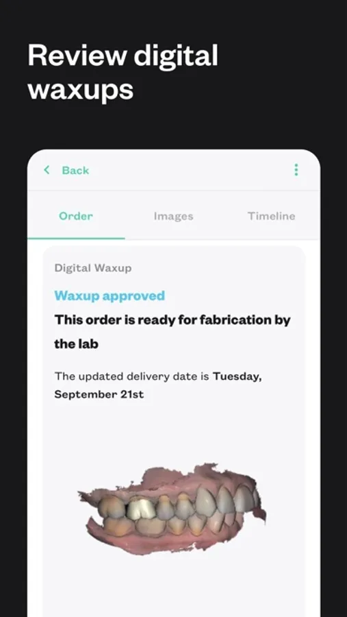 Dandy has reimagined how dentists and their staff work with their dental lab by giving you the technology and tools that make everyday a lot easier, from impression to final seating of the restoration. Our mobile app gives you the freedom to focus on what’s most important, even when that takes you out of the practice. Track and manage cases, chat with your lab team, review and approve digital waxups, add patient photos, and much more.