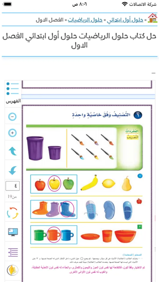 ينقسم تطبيق حلول التعليمي اون لاين إلي فصول دراسية موضحة مابين الفصل الدراسي الأول والثاني والثالث حسب المنهج، وفى كل مادة ينقسم الشرح فيها مابين توزيع وشرح وحل ودروس مشروحة فيديو.