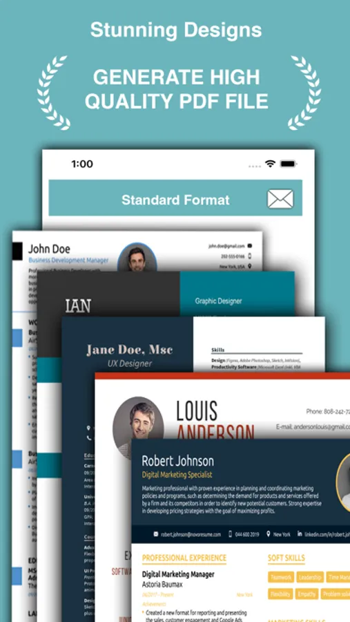 Resume Builder & CV Maker - PDF app with perfect PDF format help you to create your professional resume just in couple of minutes. The main features of Resume Builder & CV Maker - PDF app with perfect PDF template format includes: