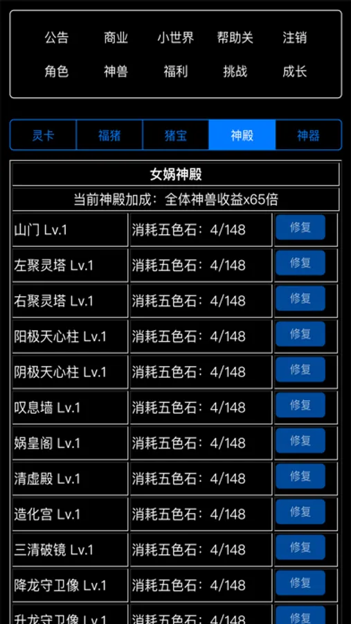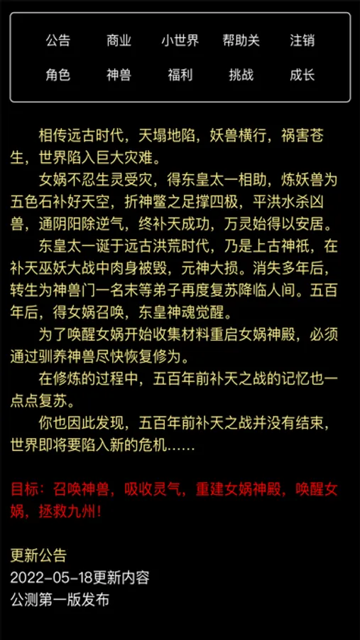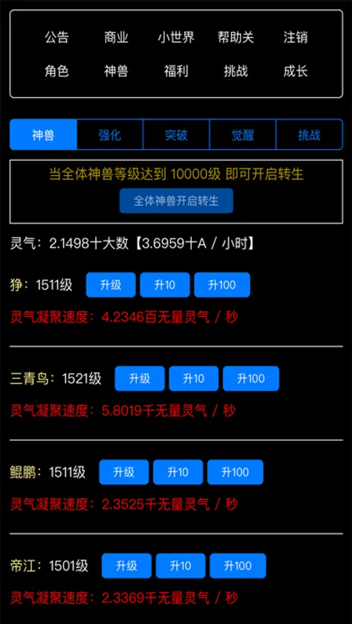 修仙养成神兽类纯文字放置应用,一切应用道具均可在应用中获取
