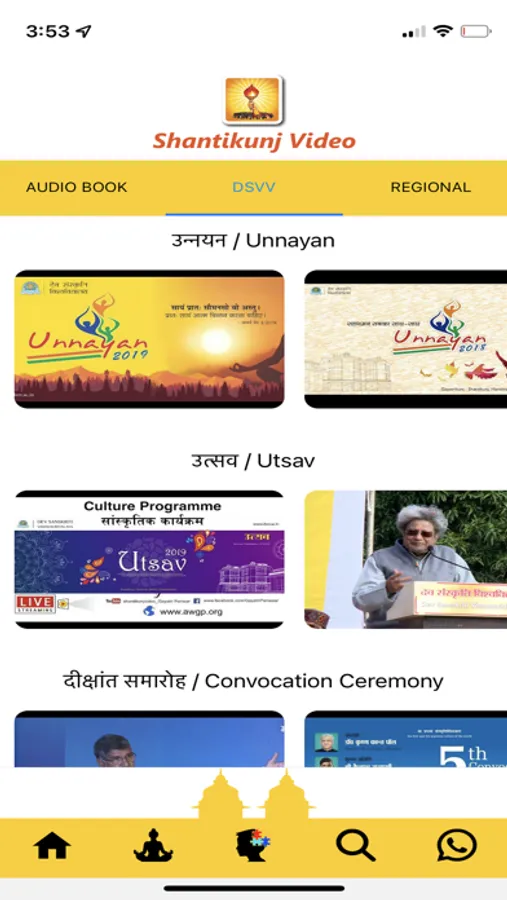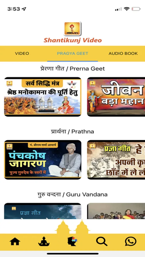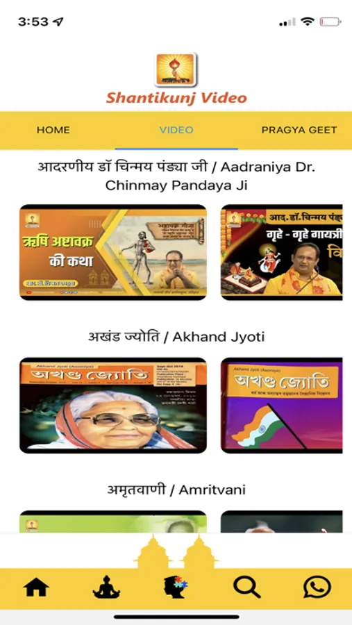 Please find below list of various categories you can find in Shantikunj Video Mobile App: