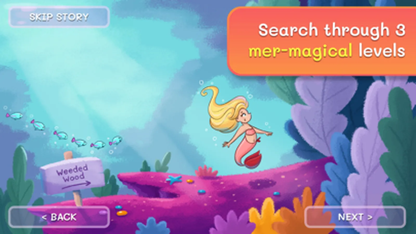 MerTales: Mermaid Rescue is a super fun and easy-to-play game. Find your way through three mazes, each set in a different part of the secret undersea village of Cockleshell Cove. Look for Silverdust the seahorse in the lush Weeded Wood, sun-drenched Seagrass Meadow, and coral-filled Bluebottle Gully.