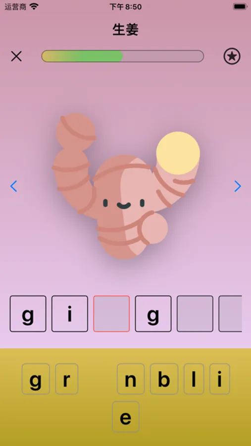2. Practice: users can practice their spelling, in this section some of the letters are provided for the user.