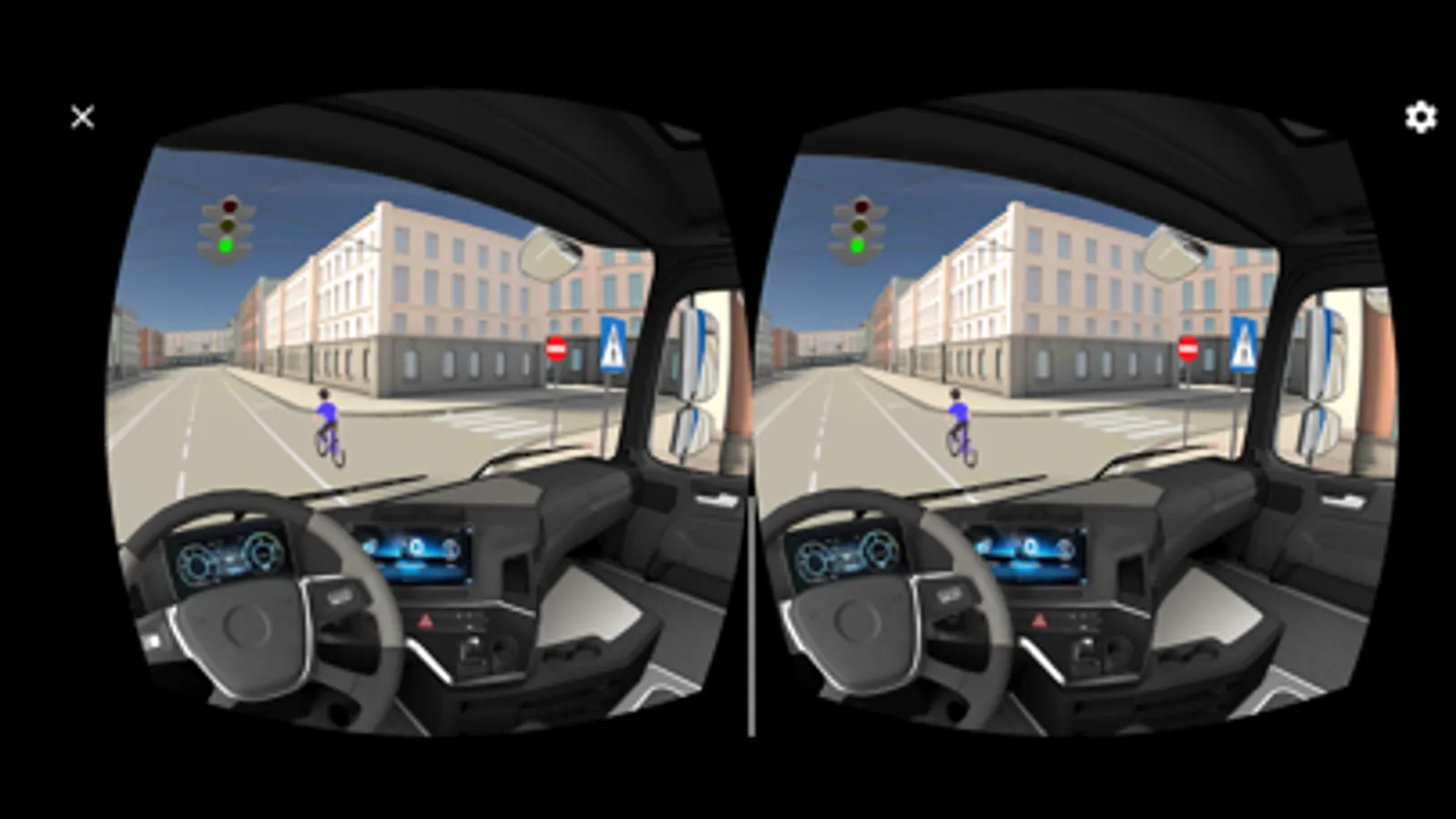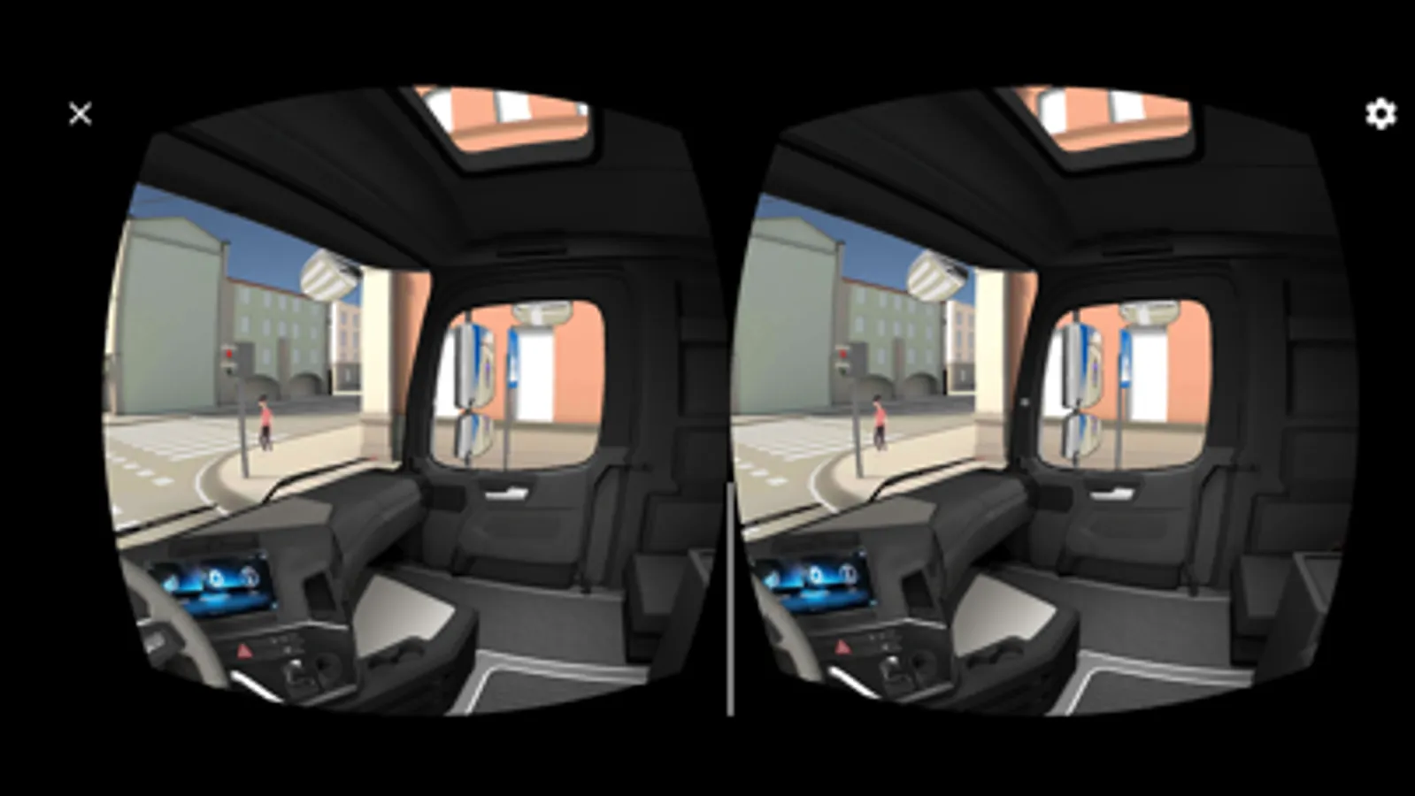 Rechtsabbiegeunfälle zwischen Lkw und anderen Verkehrsteilnehmer:innen haben zumeist dramatische Folgen. In einer zweiten Anwendung wird ein Rechtsabbiegevorgang mit einem Schwer-Lkw und den damit verbundenen Herausforderungen, zum Beispiel Toter-Winkel, simuliert. Der mögliche Perspektivenwechsel soll zur Sensibilisierung aller Verkehrsteilnehmer:innen beitragen.