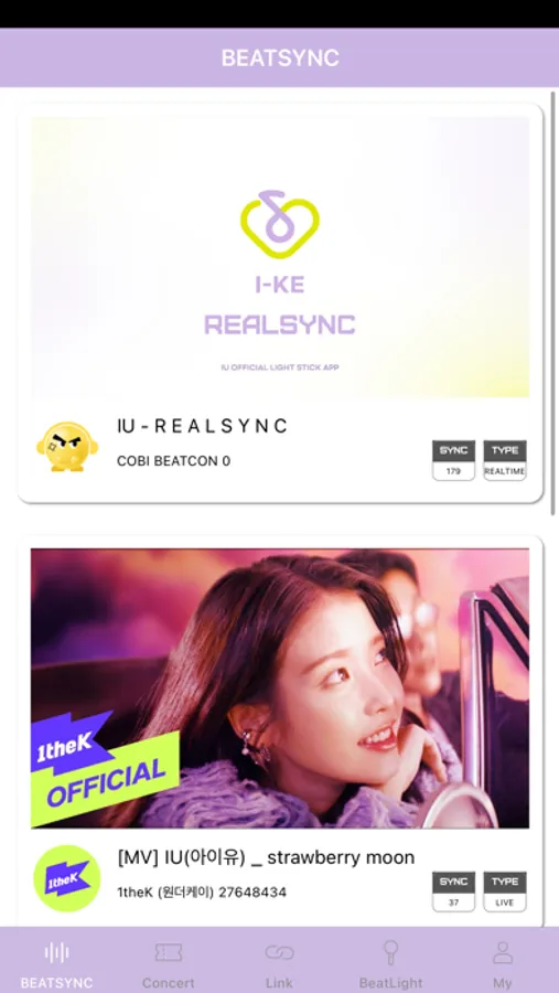 아이유 뮤직비디오 및 영상 싱크에 맞춰 공식응원봉이 컨트롤되는 온라인 전용 서비스 입니다.