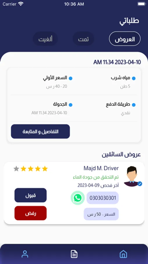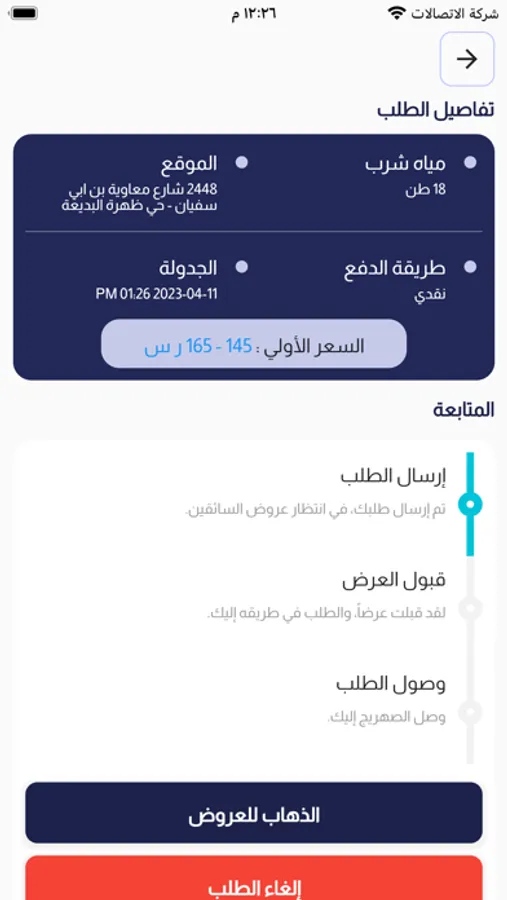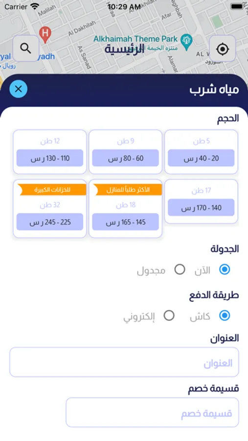 يسهل التطبيق طلب الحصول علي مياه شرب او مياه عادية من اقرب مصدر مياه حولك مما يسهل عليك التكلفة والجهد في البحث عن الموصلين.