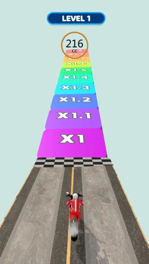 From the lowest engine to the strongest engine, accelerate on the highway and reach the final. Pass through the gates, increase the cc value, improve your engine after increasing the cc value and reach the fast engine to reach the final quickly.