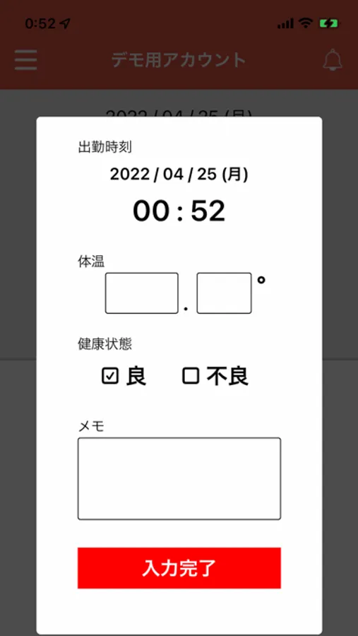 営業先、現場、リモートで業務をする際に、時間を記録します。