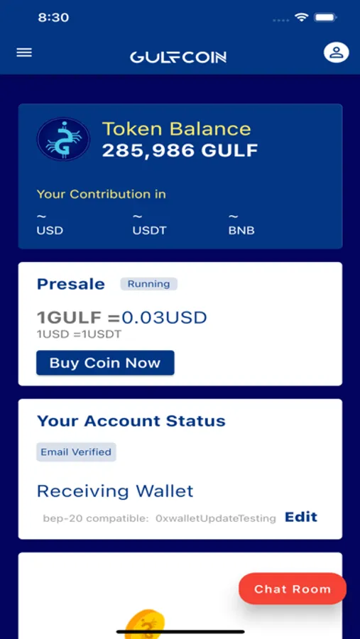 This Application is designed so anyone can easily manage their transaction, it consists of a dashboard where you can add your wallet address and buy GulfCoin within the pre-sale period , track GulfCoin price and observe your coins as well as your account status.