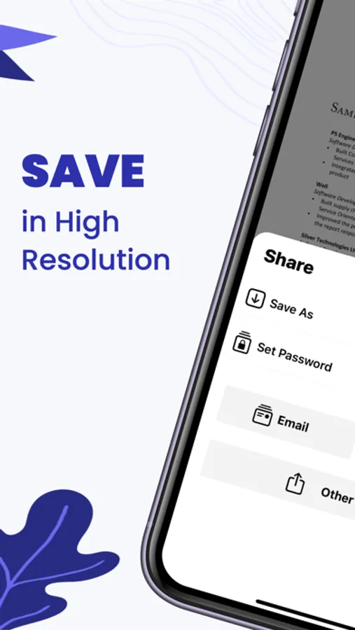 SAVE :- You can save documents in high quality as PD or JPEG via the free scanner app.