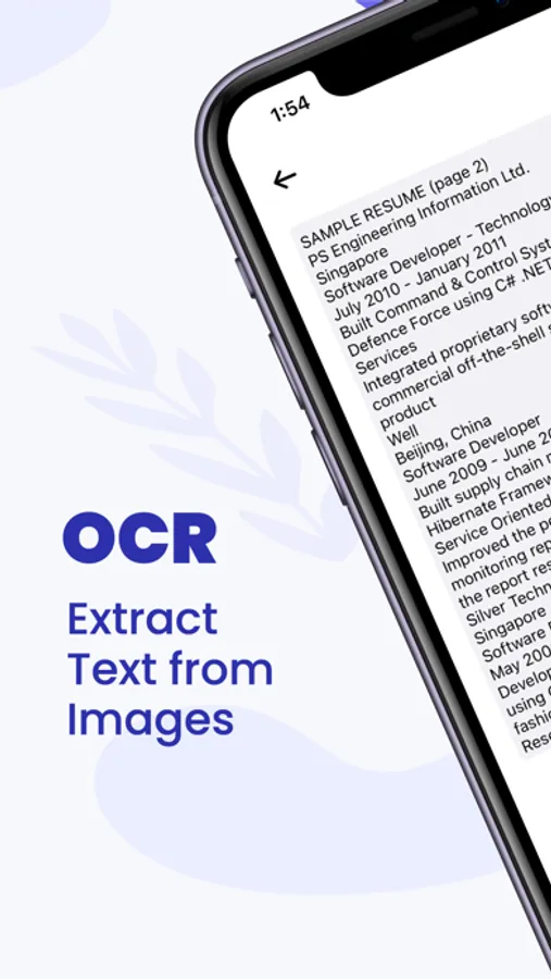 CONVERT :- Easily turn an image to editable text format with the OCR function. Extract text from a scanned document and then edit it as you wish using this scanner.