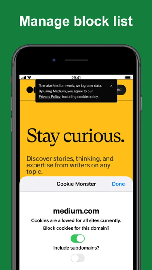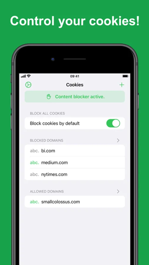 The app works as a Safari Content Blocker so the app never needs to see your browsing or know about your cookies. You can optionally turn on the Safari Extension in order to easily manage your block and allow lists from within Safari without needing to open the app!