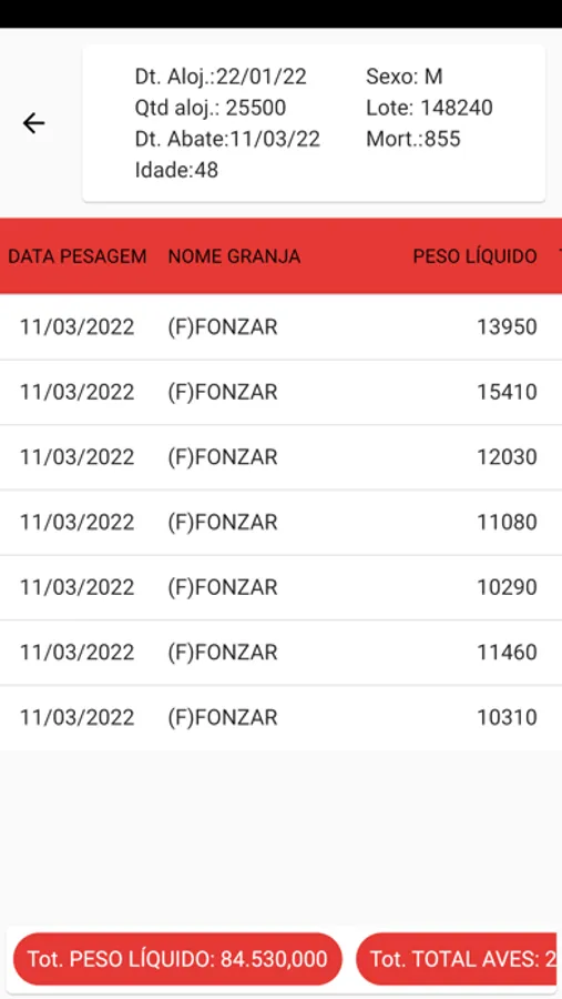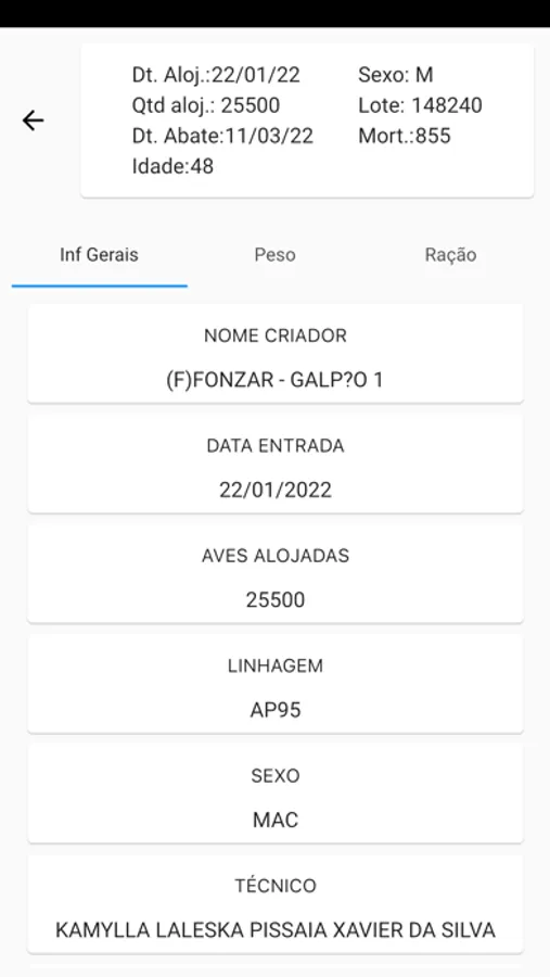O valor de pesagem informado no aplicativo é obtido no exato momento da pesagem cadastrada no sistema, sem nenhum tipo de conferencia, portanto, podendo sofrer alterações após a devida conferencia.