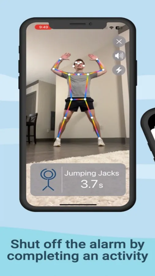 But the real fun begins when your alarm goes off. Get Up will ask you to complete a simple exercise, like jumping jacks or push-ups, in order to turn off the alarm. Don't bother trying to cheat the system either! Get Up uses AI to ensure you are up and moving before the alarm turns off.