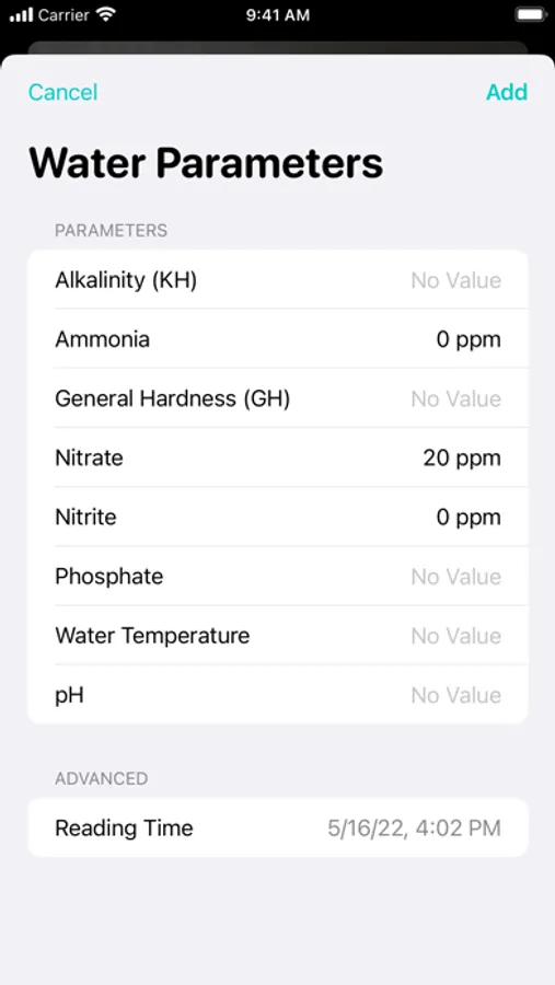 - Keep track of water parameters: after taking measurements, add a special Water Parameter entry in the journals and note all the values.