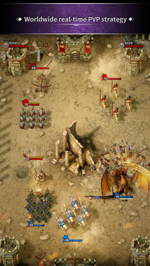 Cavalry that tramples over Infantry. Spears that pierce through Cavalry. Archers that bombard Spearmen with a flood of arrows. Configure your army by designing your very own strategy with siege weapons, war elephants, and much more.