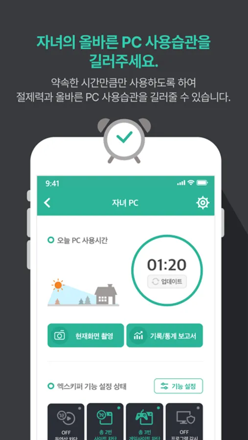 자녀가 현재 PC를 어떻게 사용하고 있는지 실시간으로 캡쳐하여 확인할 수 있어요.