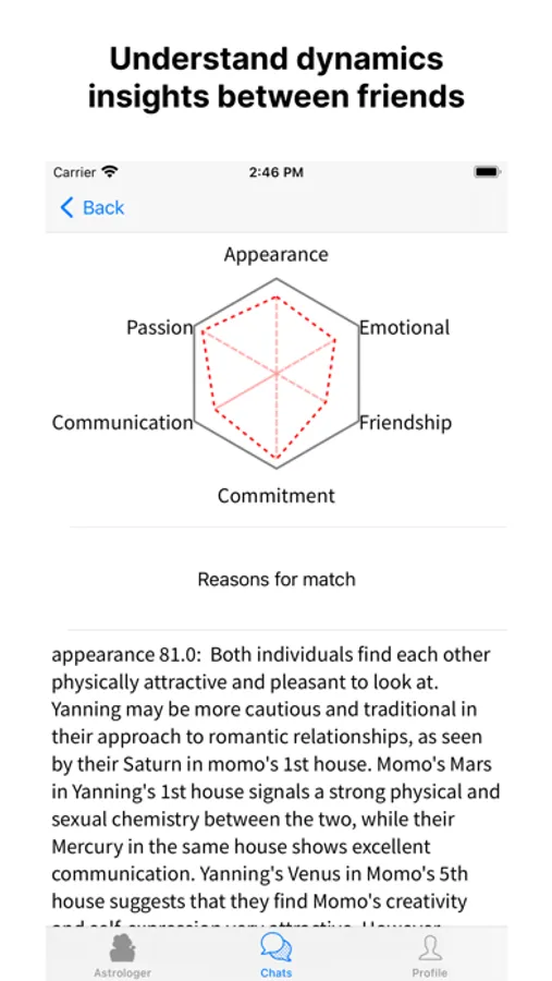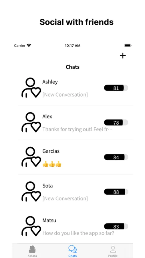 Social Dynamics Insights: Ever wondered about the dynamics between you and your friends? Astara helps you understand your social interactions and provides valuable insights into your relationships. Discover who you resonate with, who you collaborate best with, and whom you share common interests with.