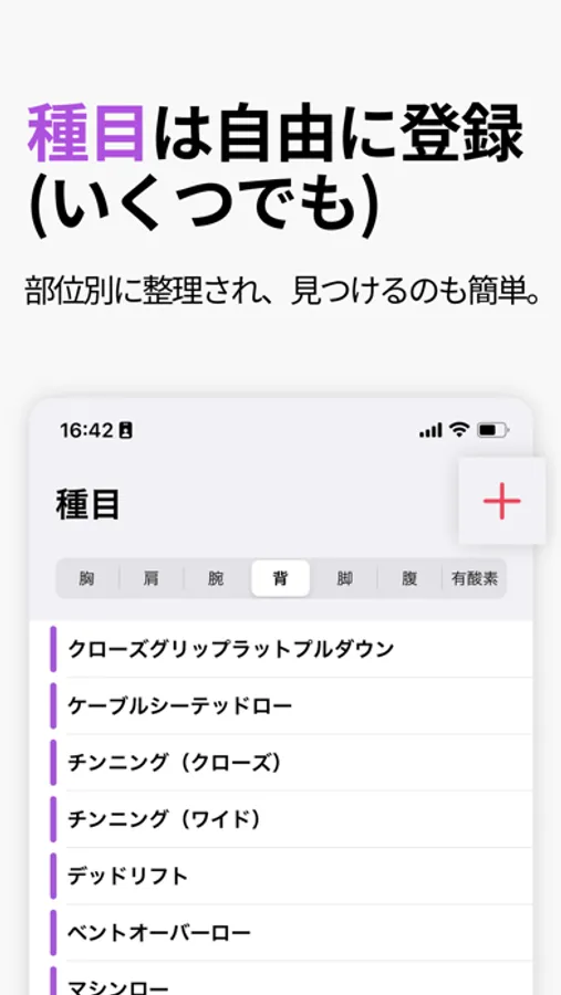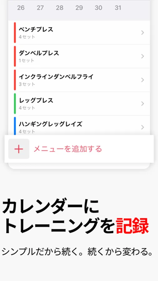 • Color-coded dots for each part are displayed on the day of training to increase motivation!