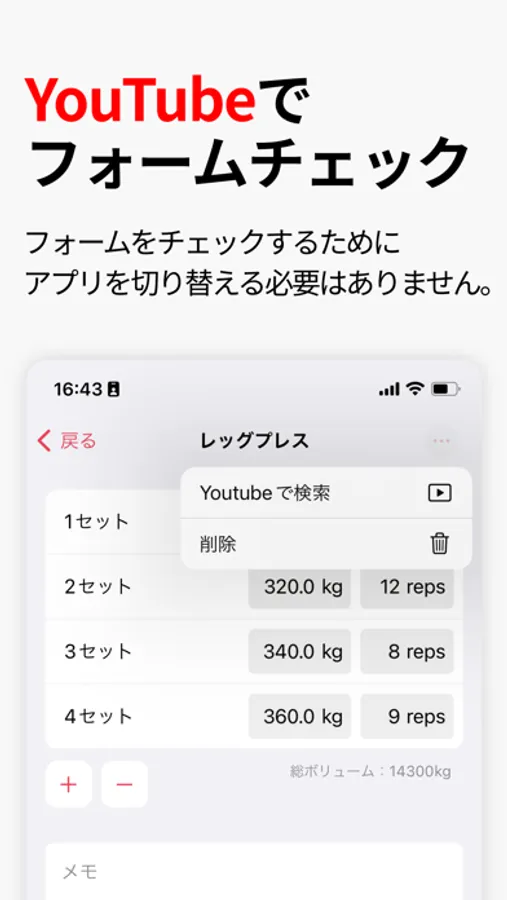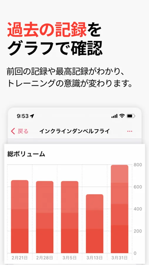 • View your past training volumes in a graph. You can refer to it in your next training.