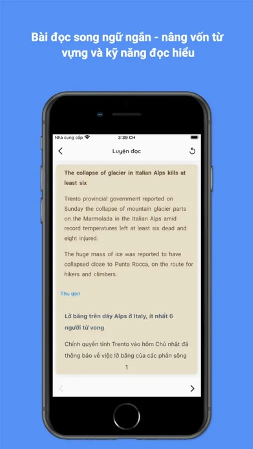 2. Nâng cao trình độ đọc hiểu tiếng anh của người dùng mỗi ngày bằng những bài đọc ngắn, câu ngắn có lời dịch