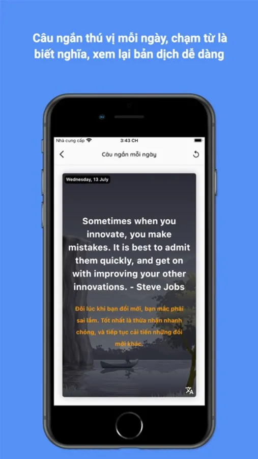 5. Mỗi ngày người dùng sẽ được luyện tập để dịch các câu ngắn trong mục câu ngắn mỗi ngày