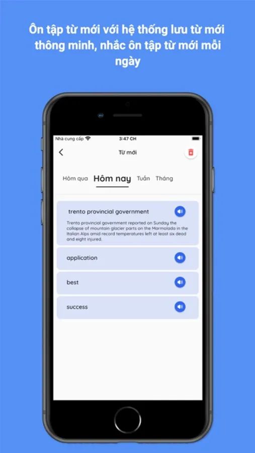 - Ôn từ mới dễ dàng với hệ thống lưu trữ và nhắc nhở hiệu quả