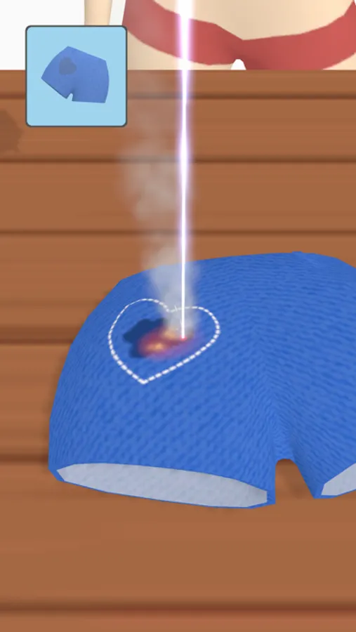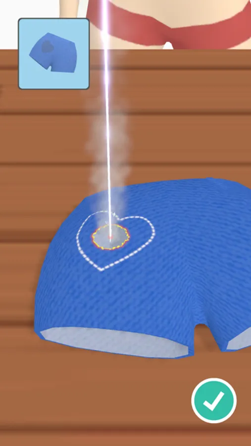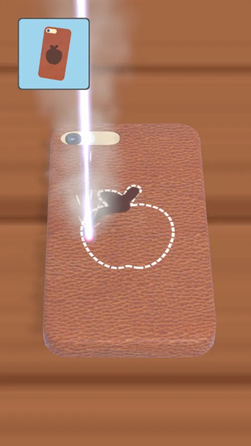 The player controls a laser light to engrave text/images on objects made from leather, jeans, wood, etc.