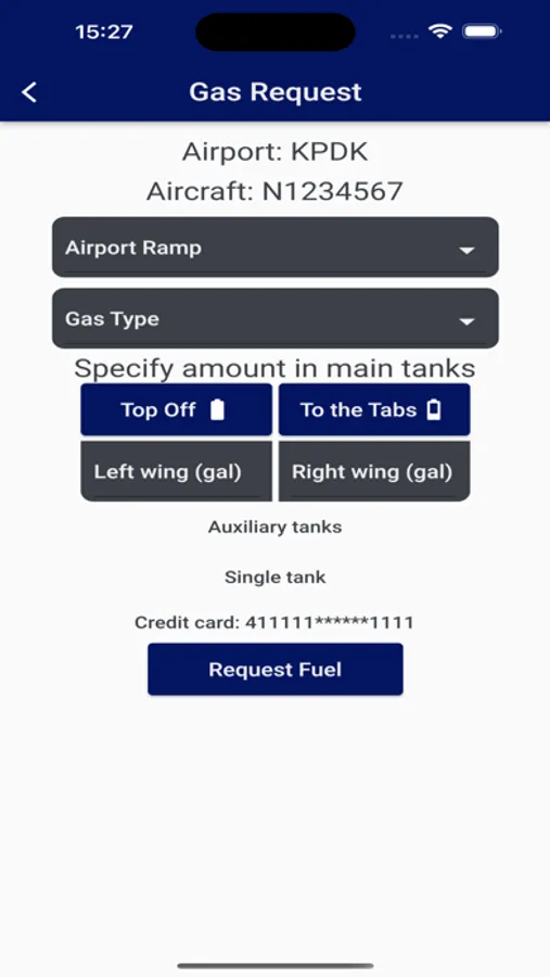 Just open the app, select your airport, tail number and desired fueling credentials - and a fueler from the FBO of your choosing will top you off.