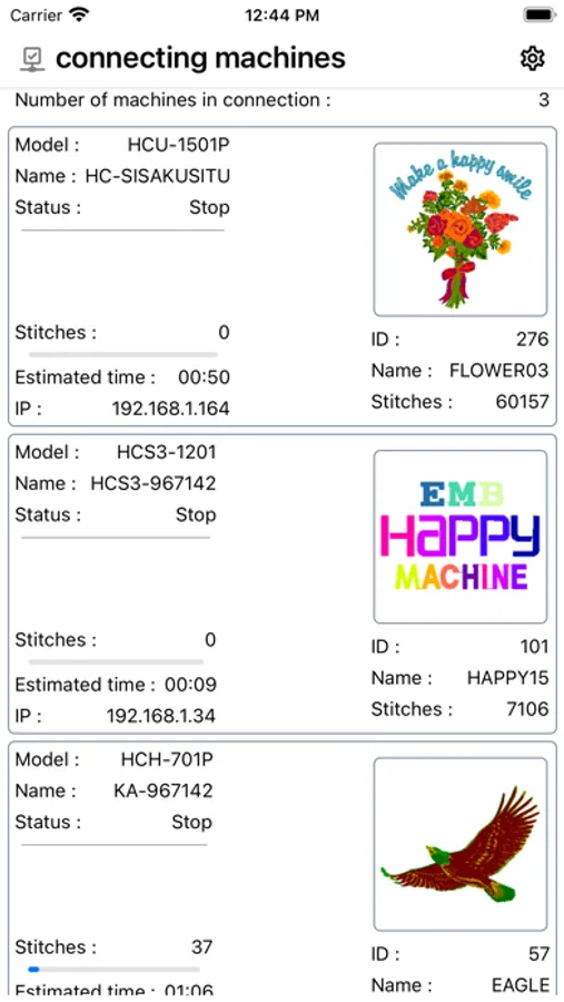 - Monitoring of embroidery machine operation status