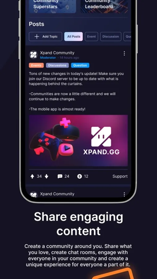 We display new members, suggest who to follow and you’ll see content from gamers you’re not familiar with - all in the attempt to help you discover new connections and for others to find you! Just by liking, commenting and interacting with content and other gamers directly in your feed, you’ll start to get to know other Xpand users!