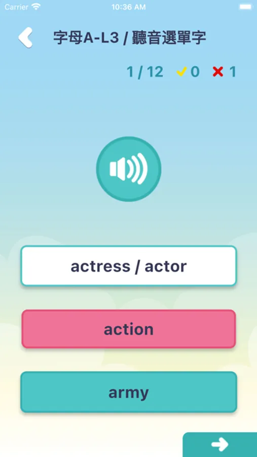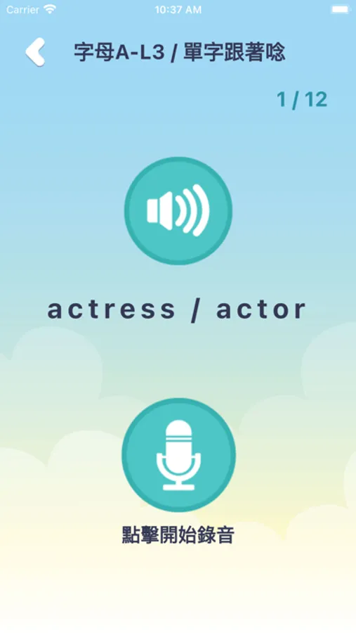 - 單字跟著念:跟著語音練發音,讓專業的AI檢測幫小朋友學到道地的美式發音