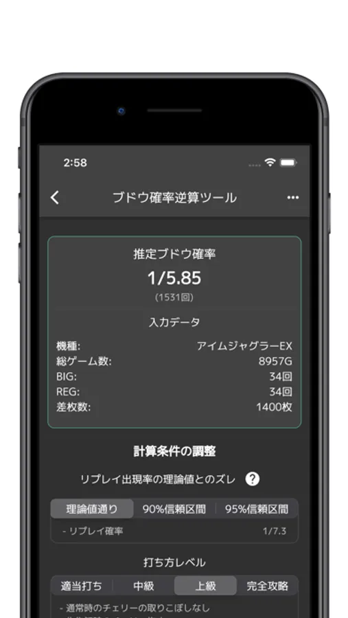 ● データカウンターの情報と差枚数からブドウ確率を推計するツール