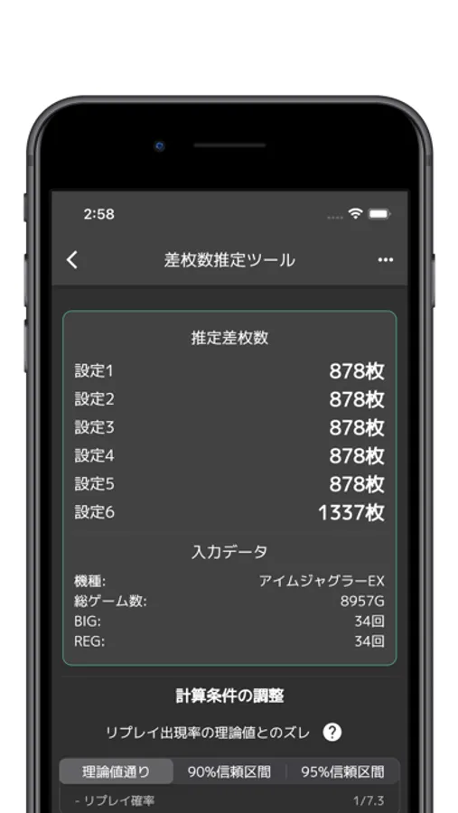 ● リプレイ出現率の理論値からの乖離や、打ち方によるロスも考慮可能