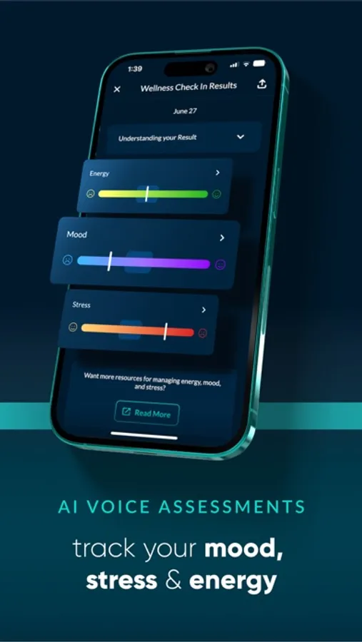 After recording your voice for just 20 seconds, Galvan’s AI analyzes your vocal biomarkers and gives you an assessment of your mood, stress, and energy levels.