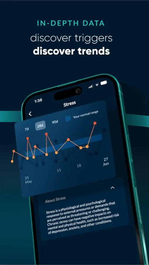 The app will nudge you to do a Wellness Check In several times a week, allowing you to track your stress, mood, and energy levels over time and extract these very insights.