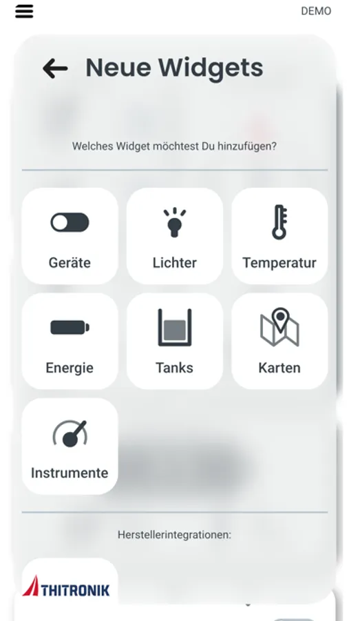 Über die App lassen sich die Bluetoothgeräte konfigurieren und auf einem individuellen Widget-Screen die Werte darstellen.